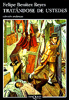 Dotado de una formidable capacidad fabuladora, Felipe Benítez Reyes viene apareciendo regularmente en nuestro catálogo desde 1996, cuando publicamos su excelente poemario El equipaje abierto (Marginales 152), al que siguieron un sorprendente volumen de relatos, Maneras de perder (Andanzas 302) y la novela El novio del mundo (Andanzas 327), que en pocos meses alcanzó tres reimpresiones y una calurosa acogida por parte de la crítica. Era tiempo, pues, de recuperar la novela Tratándose de ustedes, publicada originalmente en 1992, en la que ya daba muestras de un talento narrativo que el tiempo se ha encargado de confirmar.